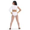 Shown in: White Satin Spandex, Gold/Gold Twinkle Twinkle, Tan Power Mesh, Gold Sequin Trim