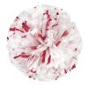 Pom as shown: White 3/4″ wide Wet Look strands with Red 3/16″ wide Glitter strands